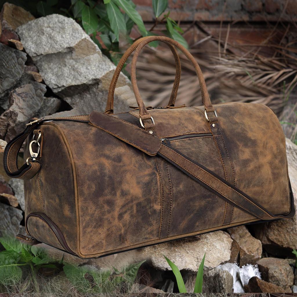 Handmade Leather Rolling Duffle Bag: 24-inch Travel Weekender