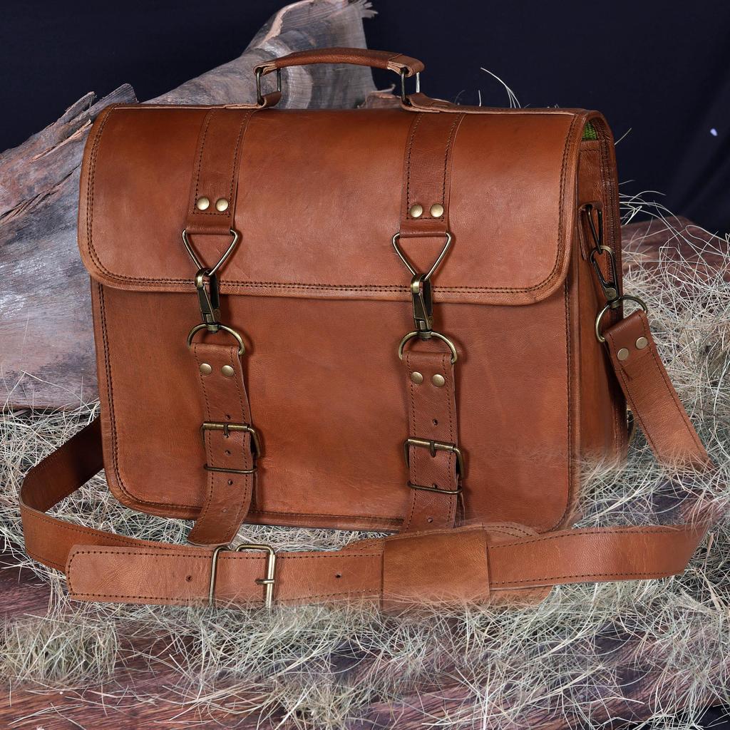 Handmade Leather Messenger Bag for Men & Women | Vintage Brown Leather Satchel | Office Laptop Briefcase | Crossbody Shoulder Bag