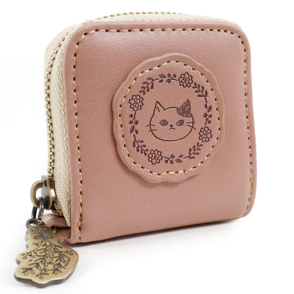 Chanfee Mini-Münzbörse mit süßem Katzenkranz-Muster und geprägtem Gürtel, Damen, Reißverschluss-Rund (Rosa)