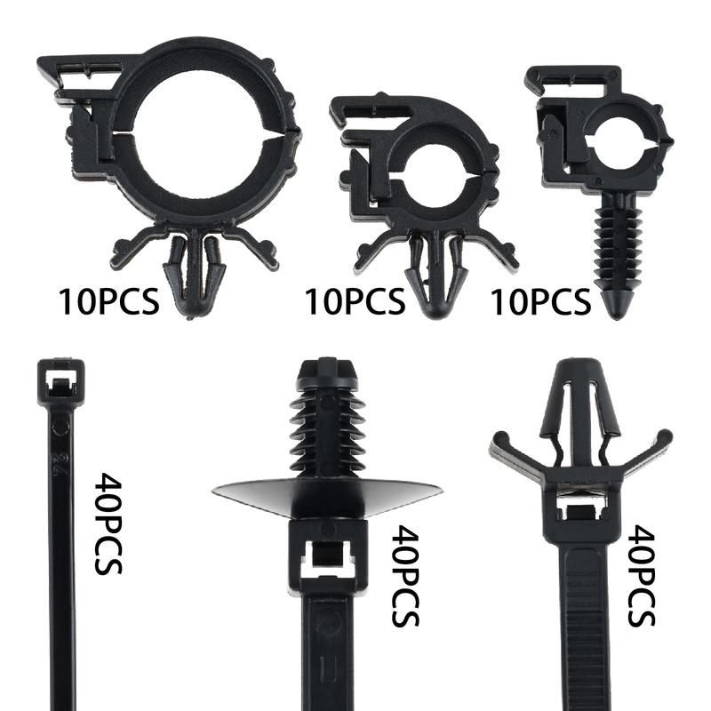 120Pcs Nylon Self Locking Cable Straps 30pcs Wire Loom Clips Car Pipe Cable Fastener Bundle Fixed Binding Wire Fixing Zip Ties
