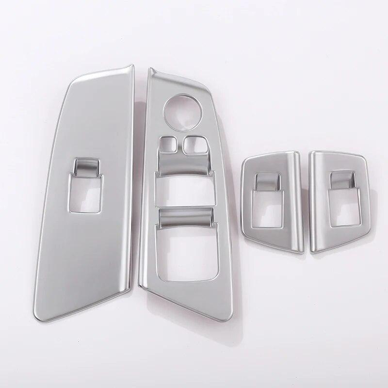 PASSEND FÜR BMW 5er G30 G38 2018-22 ABS Carbon LHD Auto-Fensterschalter Hebeknopf Rahmenabdeckung Verkleidung Chrom-Galvanisierung 4 STÜCK