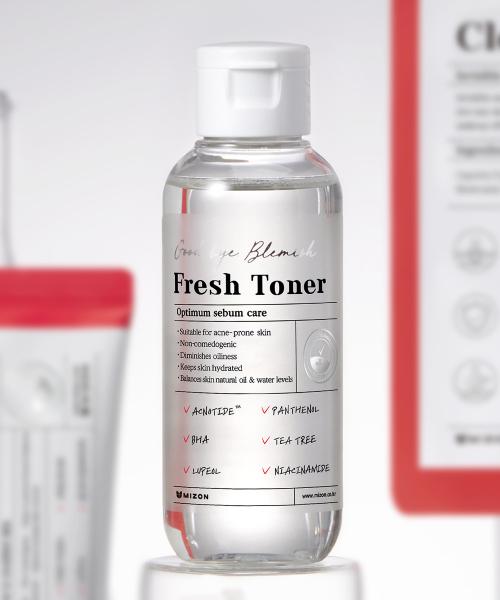 Say goodbye to pesky breakouts and hello to clearer, happier skin with the Mizon Trouble Goodbye Blemish Fresh Toner!