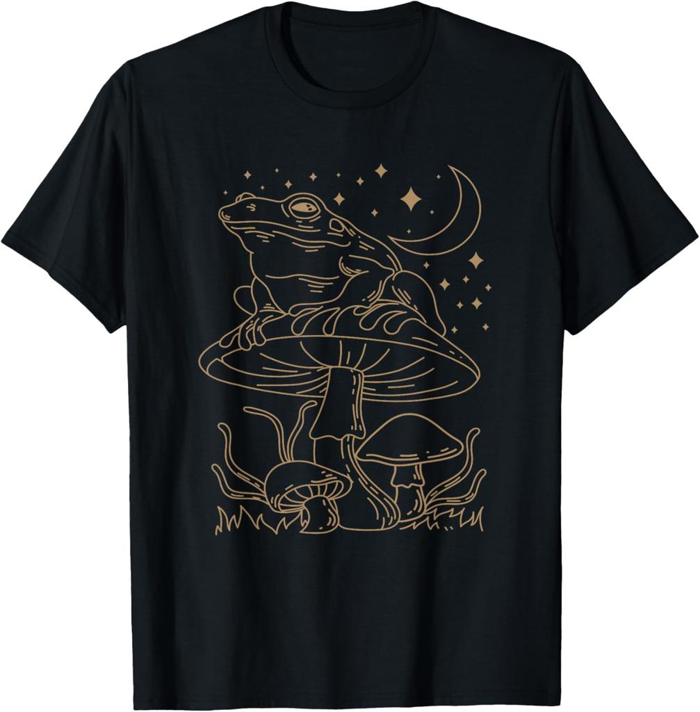 Celestial Frog On Mushroom Graphic Tee Cottagecore Aesthetic Casual T-Shirt