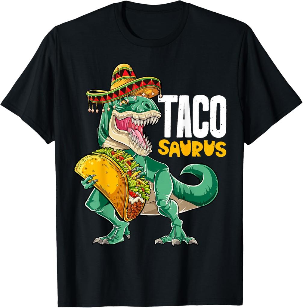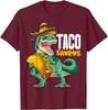 Tacosaurus Dinosaur mit Taco Sombrero Grafik T-Shirt Baumwolle Lässig Kurzarm T-Shirt für Herren