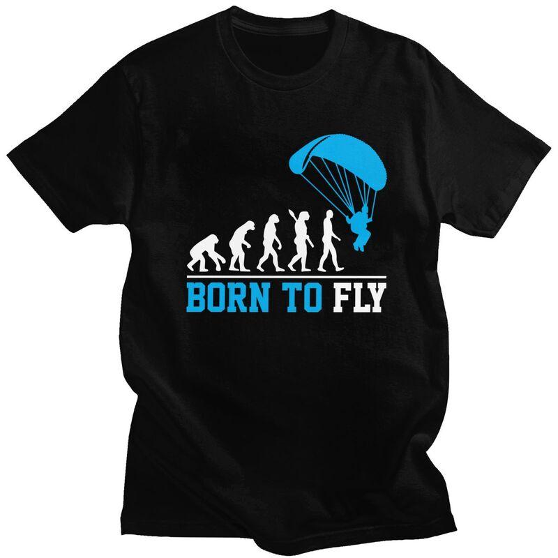 Individuelle Evolution Gleitschirmfliegen Born To Fly T-Shirts für Männer Reines Baumwoll-T-Shirts Gleitschirmflieger Fallschirmspringen T-Shirts Kurzarm-T-Shirt
