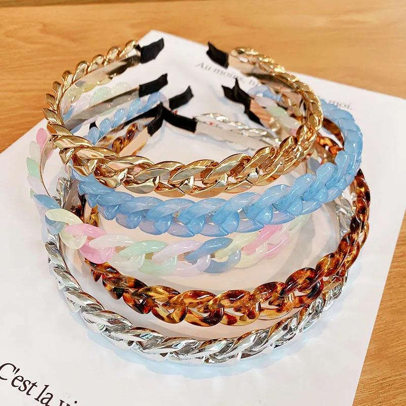 1pc New Women Vintage Gold Silver Chain Hairbands Sweet Hair Decorate Headband Turban Simple Hair Hoops Fashion Hair Accessories