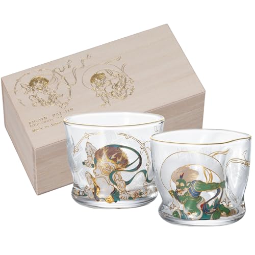 Aderia (ADERIA) [Premium Nippon Taste Sake Glasses, Fujin and Raijin Design Pair Set, 100ml, Made in Japan, Gift Boxed, S6226] Stylish glass sake cups