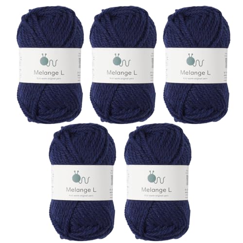 Raw Wool Melange Yarn, Extra Thick, 30g (45m), 60% Wool, 40% Acrylic, 5 Balls, Navy