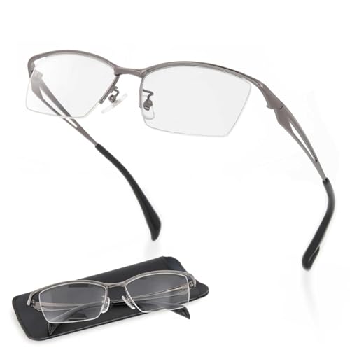 FEELLIFE Men's Stylish Reading Glasses, Nylon Gunmetal, Sabae Planning, Includes Package and Case, FLM-006-2, +2.50