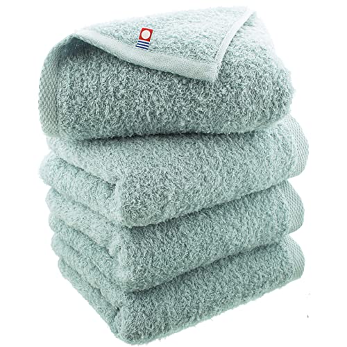 [40er-Zählung mit langem Flor für ein weiches, flauschiges Gefühl] Wird mit jeder Wäsche weicher! Sie werden mit jeder Anwendung zufrieden sein! Dieses leichte, einfach zu bedienende Basis-Gesichtstuch wird mit dünneren und längeren Fäden als normale Handtücher hergestellt, um ein angenehmes, flauschiges Gefühl zu gewährleisten.. Es verwendet außerdem den gleichen Faden, der üblicherweise in bequemer Unterwäsche verwendet wird, und sorgt bei jeder Anwendung für ein glattes, beruhigendes Gefühl.. *Standardhandtücher verwenden 20er-Schlingengarn, während die Originalhandtücher der Imabari-Fabrik 40er- verwenden. (Die Zählung gibt die Dicke des Garns an; Je höher die Zahl, desto feiner ist das Garn.) [Praktisch für den täglichen Gebrauch! Sehr saugfähig und schnell trocknend] Der voluminöse, hochwertige Langflorstoff erhöht seine Saugfähigkeit und sorgt für zuverlässige Feuchtigkeits. Einfach nach dem Bad oder nach dem Schwitzen im Fitnessstudio oder beim Sport leicht auf den Körper auftragen, und es zieht Feuchtigkeit schnell und angenehm ein.. Der dünne, lange Flor schafft Raum zwischen den Fasern, lässt Luft eindringen und sorgt so für schnelle Trocknungszeiten.. Diese Handtücher sind ideal für Badezimmer und Küche.. Ihre leichte Textur und die schnell trocknenden Eigenschaften halten sie frisch und sauber. Sie trocknen auch leicht drinnen bei regnerischem, windigem oder pollenreichem Wetter.. Handtücher sind unverzichtbar für Outdoor-Aktivitäten wie Grillen und Camping, Outdoor-Veranstaltungen sowie Outdoor-Vereinsaktivitäten und die Arbeit.. [Stilvolle, nuancierte Farben, die sowohl zum Aufhängen, Falten als auch Zusammenlegen gut aussehen] Diese Unisex-Handtücher fügen sich nahtlos in den Alltag ein und schaffen einen sanften Raum. Wählen Sie aus einem einfachen, passenden Farbschema oder kombinieren Sie, um Ihren eigenen einzigartigen Look zu kreieren.. Die vielseitigen Farben fügen sich nahtlos in jede Einrichtung ein und machen sie zu einem dezenten Akzentstück.. Sie ergänzen natürliche und skandinavisch inspirierte Räume sowie warme, reichhaltige Möbel wie Walnuss, daher sind sie perfekt zum Präsentieren und Aufbewahren. Hochwertige Handtücher, hergestellt in Imabari, einer renommierten Region am wunderschönen Seto-Binnenmeer: """Wenn es um Handtücher geht, dann ist es Imabari!"""""" Diese Handtücher werden in Imabari, Ehime, einer renommierten Handtuchproduktionsregion, hergestellt, was eine sichere und zuverlässige Qualität gewährleistet.""". Nur Handtücher von hoher Qualität, die die einzigartigen Qualitätsstandards der Imabari Towel Industrial Association erfüllen, können als „Imabari Handtuch Markenprodukt“ zertifiziert werden. Dieses Set aus vier ist für Großeinkäufe empfohlen.. Diese Handtücher sind eine Freude in großer Menge und somit ideal für Einweihungsfeiern, Hochzeiten und Babypartys.. Sie sind auch für den Heimgebrauch sowie für den professionellen Einsatz in Friseursalons, Kosmetikstudios, Pensionen, Hotels, Gasthöfen, öffentlichen Bädern und Saunen geeignet.. Darüber hinaus gelten Imabari-Handtücher als glückverheißende „Gute Besserung“-Handtücher, was sie perfekt für Kondolenzschreiben, Genesungswünsche und Dankeschön-Geschenke macht.. - Ersatzrichtlinien - Obwohl sie auf Langlebigkeit ausgelegt sind, neigen Handtücher bei wiederholtem Waschen dazu, steif zu werden.. Wir empfehlen, die Beschaffenheit Ihrer Handtücher alle sechs Monate bis zu einem Jahr zu überprüfen und sie entsprechend zu ersetzen.. - Empfohlene Pflegemethoden - Beim Waschen ist es wichtig, reichlich Wasser zu verwenden, denn je mehr Wäsche sich im Wasser bewegt, desto besser löst sich der Schmutz und desto weniger Schäden entstehen durch das Aneinanderreiben.. Das sofortige Waschen nach Gebrauch, anstatt es lange liegen zu lassen, hilft, Gerüche zu vermeiden.. Da der Flor lang ist, besteht die Gefahr des Hängenbleibens, daher empfehlen wir das Waschen in einem Wäschenetz.. Vor dem Trocknen das Flor des Handtuchs gründlich auflockern, ausbreiten oder halbieren und 10 bis 20 Mal kräftig ausschütteln.. Diese Aktion richtet den Flor auf, wodurch das Handtuch mit einer Textur trocknen kann, die der vor dem Waschen ähnelt.. - Vorsichtsmaßnahmen für die Verwendung - Imabari-Handtücher saugen Wasser direkt nach der Herstellung gut auf, aber da sie direkten Körperkontakt haben, waschen Sie sie bitte vor Gebrauch, um Staub zu entfernen.. * Anfangs kann es zu Haarausfall und Farbverblassung kommen. Kleine Mengen Handtücher, nach Farben getrennt, ohne Mischung mit anderer Wäsche waschen.. * Um das Ausfransen und Ausfallen der Fasern zu verhindern, empfehlen wir das Waschen in einem Wäschenetz.. *Beim Waschen in einer normalen Waschmaschine ein neutrales Waschmittel verwenden. Verwenden Sie keine chlorhaltigen Reinigungsmittel oder Bleichmittel. *Um die Saugfähigkeit lange zu erhalten, empfehlen wir, auf Weichspüler so weit wie möglich zu verzichten.. Wenn sich das Produkt steif anfühlt, verwenden Sie eine kleine Menge. *Es kann nach dem Waschen leicht einlaufen. *Wenn es nass bleibt, kann die Farbe auf andere Gegenstände übertragen werden. Formen Sie es daher nach dem Waschen neu und trocknen Sie es sofort im Schatten.. *Keinen Trockner verwenden. *Nicht bügeln.