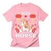 2026 Jahr des Pferdes T-Shirt Mondneujahrshemd Chinesisches Neujahrs-T-Shirt Niedliches Sternzeichen-Pferd Cartoon-Aufdruck T-Shirt Damen Oberteile