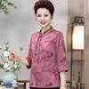 Damen Jacquard-Bluse im chinesischen Stil Stehkragen 3/4-Ärmel Lässiges Knopfleisten-Oberteil für mittleres und älteres Alter