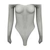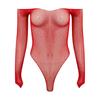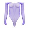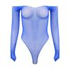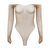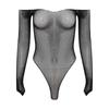 Damen glänzender Strassnetz-Off-Shoulder-Body mit langen Ärmeln, dehnbar