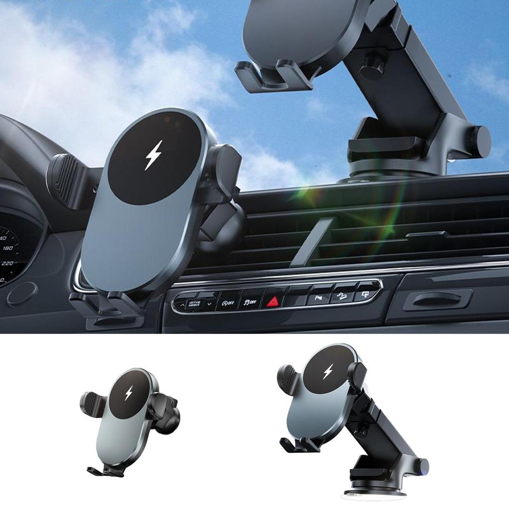 Wireless Phone Charger For Car 15W Suction Cup & Clip Cellphone Charger Fast Charging Phone Holder For Car Automotive Vehicle