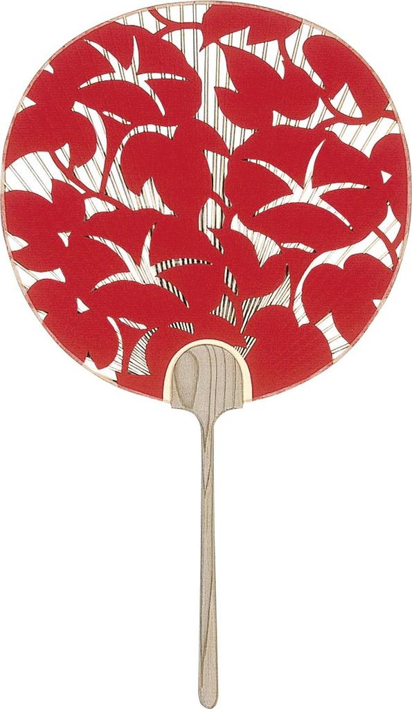 Shiomi Uchiwa Hergestellt in Tanabata 25cm x 43cm Fächer, Japan, (rot), Beidseitig durchbrochen, 2002,