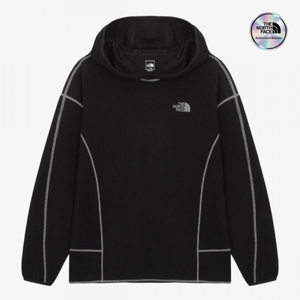 The NT7TR52A Men's Serra Long Sleeve Hoodie is an optimized semi-loose fit hoodie made with a dense, comfortable waffle fabric that balances warmth and breathability. It has an active silhouette designed for various outdoor activities like hiking. The main seams feature a color-contrast cover stitch for added visual appeal.