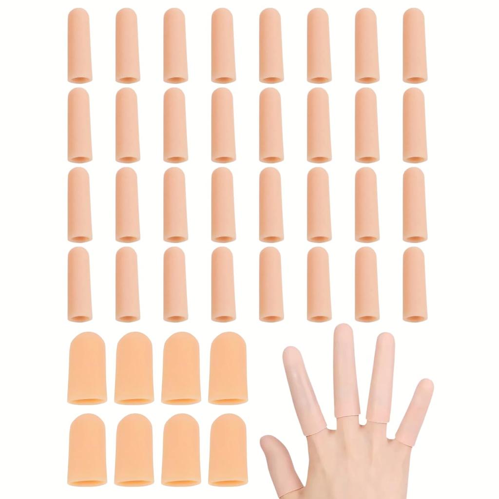 These caps are also useful for general household chores, including waterwork, DIY projects, gardening, desk work, sports, and arts and crafts. [Product Specifications] Set Contents: 8 fingertip protection caps for thumbs (thick, short length), 32 for other fingers (thin, long length) - 40 caps in total. Size: Thumb caps approximately 2.0cm x 4.0cm x 0.2cm thick, Other fingers approximately 1.5cm x 5.0cm x 0.2cm thick. Color: Skin-tone. Material: Silicone. *Colors may appear slightly different depending on your monitor settings.