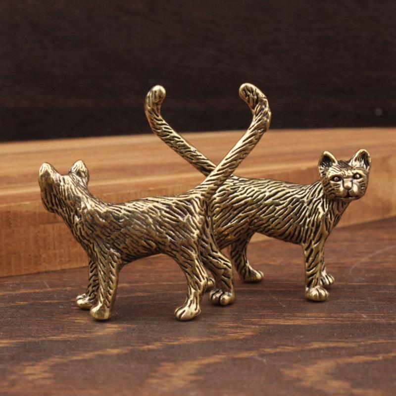 Kreative Retro Messing Kleine Haustierkatze Statue Interessante Mini Langschwanzkatze Tischdekoration Miniatur Heimdeko Handwerk Geschenk