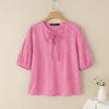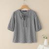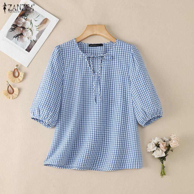 ZANZEA Women Plaid Print Casual Roujnd Neck 3/4 Sleeve Loose Blouse