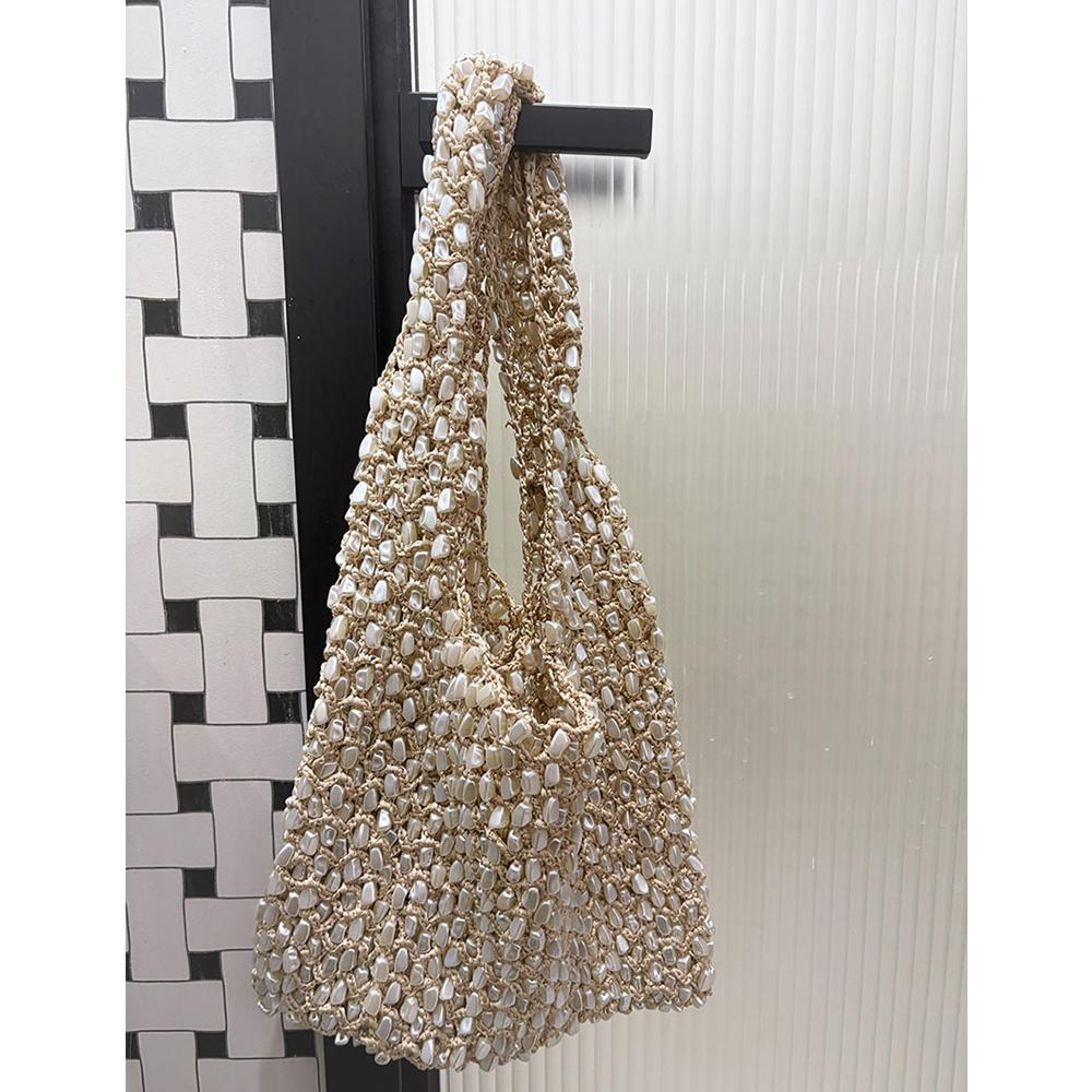 Handmade Stone Crochet Shoulder Bag Luxury Hollow Woven Handbags and Purses Rope Knitting Shopper Tote Designer Bags for Women