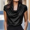 Spring Summer Women's Cowl Neck Draped Short Sleeve Blouse Casual Versatile Top