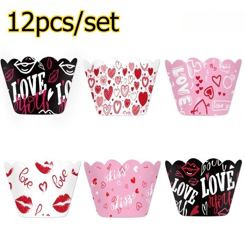 12pcs/set Valentine's Day Decor Scene Prop Heart Baking Cake Wrappers Party Decor Supplies Cake Decoration Accessories