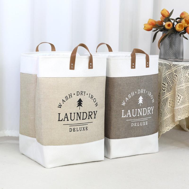 Linen Cotton Handheld Bag Home Clothes Organizer Dirty Laundry Tote Reusable Storage Bag for Household Clothing Organization