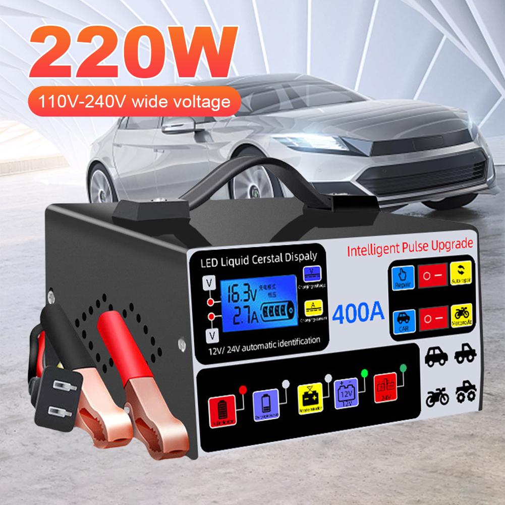 400A Heavy Duty Intelligentes Batterieladegerät 12V/24V Intelligentes Puls-Reparatur-Ladegerät LCD-Anzeige Selbstabschaltung Batterieladegerät Fünfstufig
