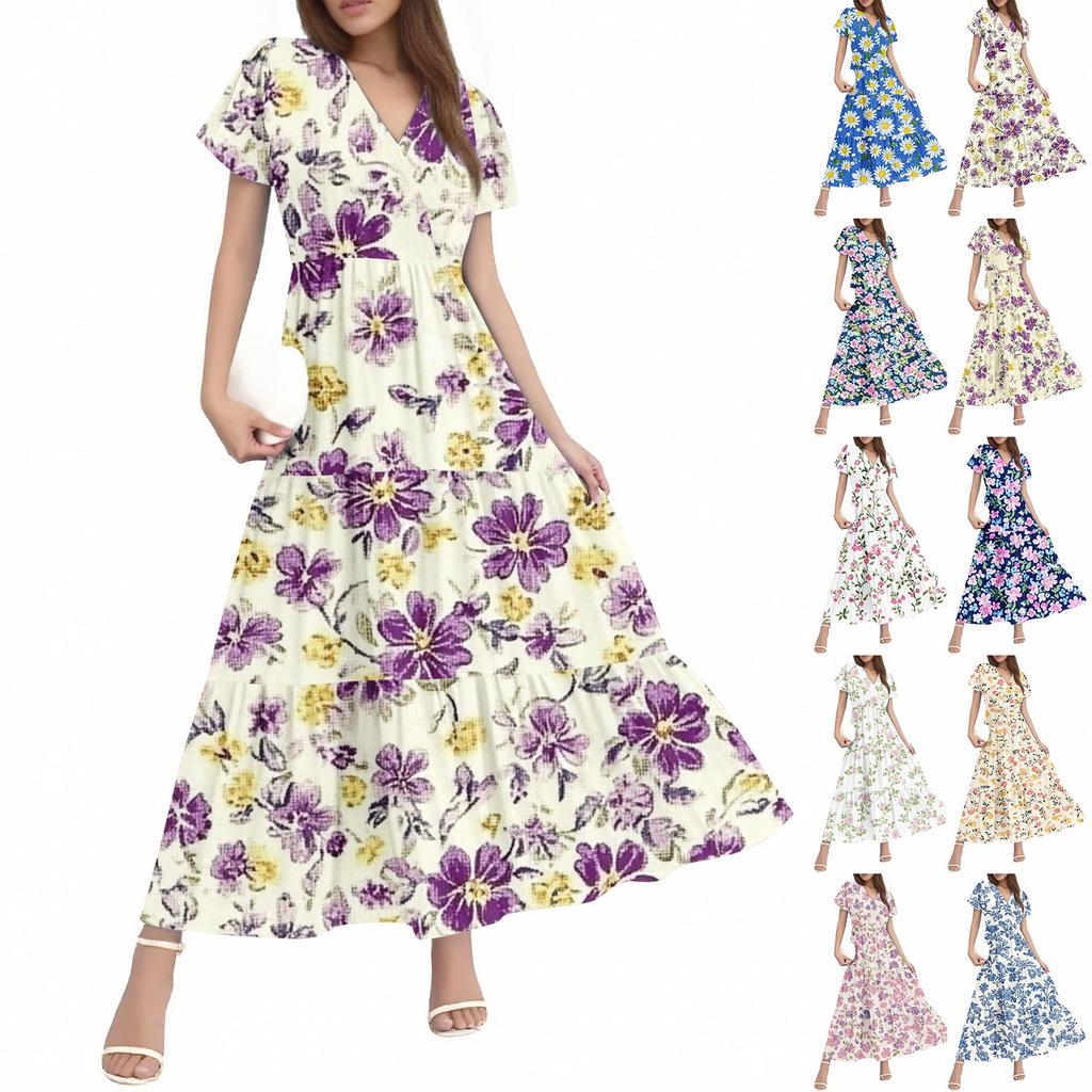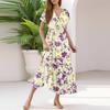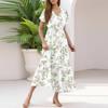 Damen Sommer Casual Mode V-Ausschnitt Rüschenärmel Blumendruck Midi-Kleid