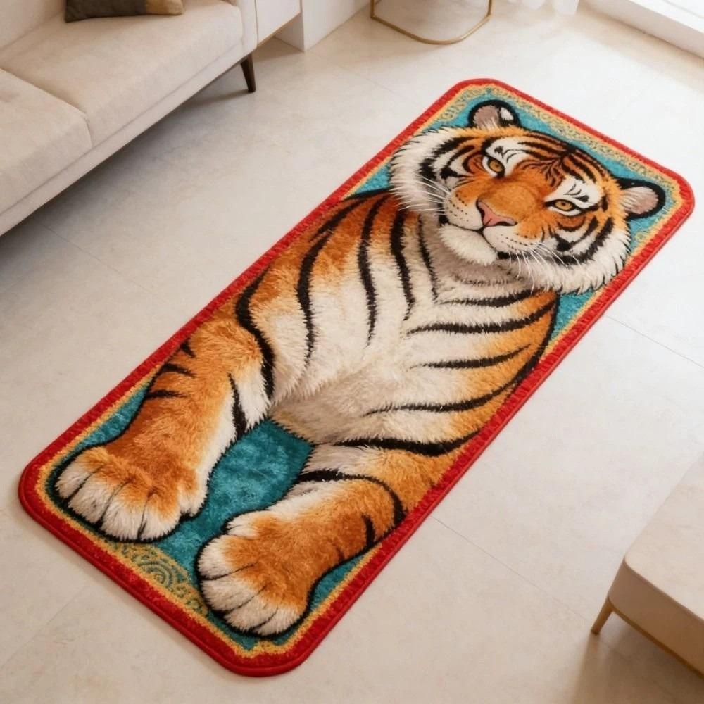 2D Flat Tiger Bedroom Carpet Water-absorbing Bedside Rug Creativity Doormat Home Decor