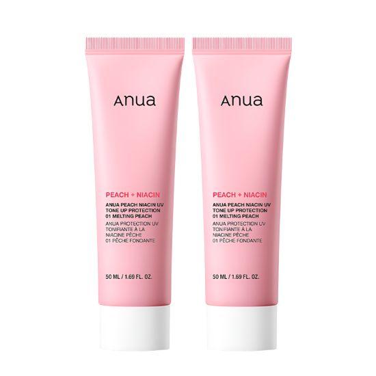 Anua Peach Niacinamide UV Tone-Up Sunscreen SPF50+ Brightening Korean Sun Cream 50ml x2