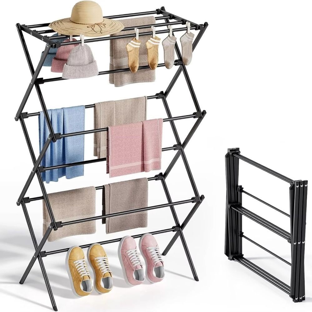 Collapsible Clothes Drying Rack 3-Layer Laundry Stand Clothing Rack Clothes Airer Floor