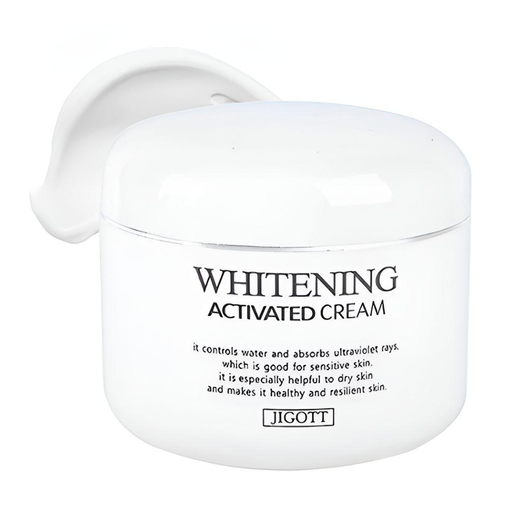 Jigott Whitening Activated Cream ist eine aufhellende und Anti-Falten-Hautpflegebehandlung, die entwickelt wurde, um einen fahlen Hautton zu verbessern und gleichzeitig eine glattere, gesünder aussehende Haut zu unterstützen.. Angereichert mit aufhellenden und pflegenden Inhaltsstoffen, hilft es, die Ausstrahlung zu verbessern und das Erscheinungsbild von feinen Linien zu reduzieren.. Die reichhaltige und dennoch geschmeidige Cremetextur zieht angenehm ein und spendet langanhaltende Feuchtigkeit.. Ideal für tägliche Hautpflegeroutinen mit Fokus auf Aufhellung und Faltenpflege.