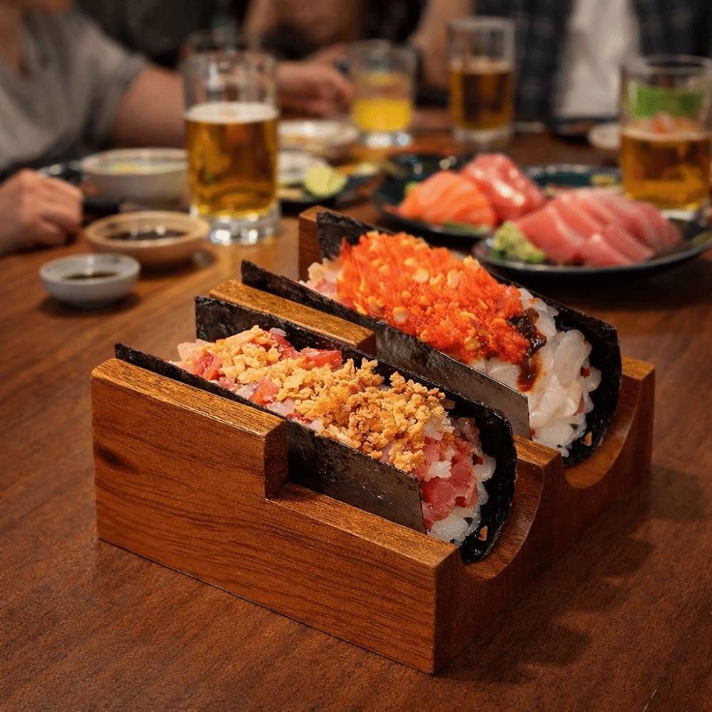 Japanese Style Walnut Sushi Rack U-shaped Sushi Wooden Tray Food Display Rack Kitchen Tool