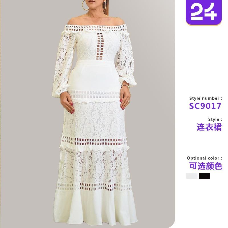 Frühling und Sommer neues Damen-Spitzenkleid One-Shoulder-Kleid mit Lotusblatt-Kragen Hochzeitskleid Abendkleid Bankettkleid