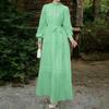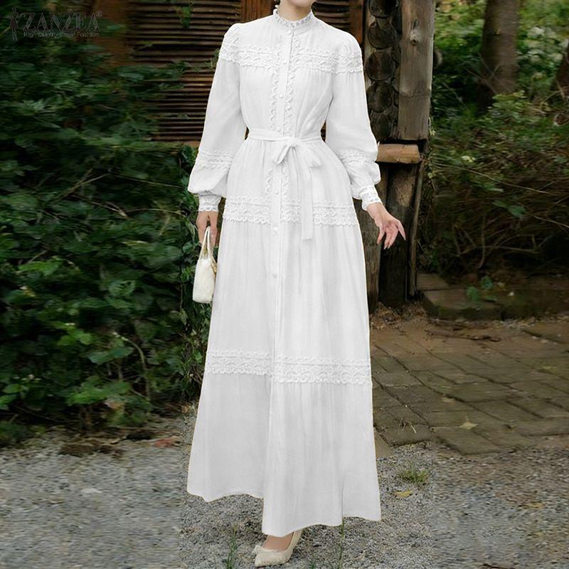 ZANZEA Women Casual Round Neck Long Sleeve Lace Patchwork Long Dress