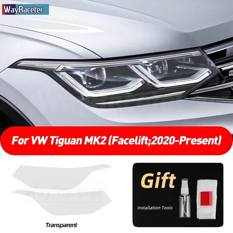 Car Headlight Protective Film Transparent Smoked Black TPU Sticker For Volkswagen Tiguan VW R Line Facelift