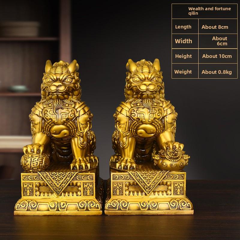 1 Pair of Brass Qilin Ornaments for Prosperity and Blessings Home Living Decor