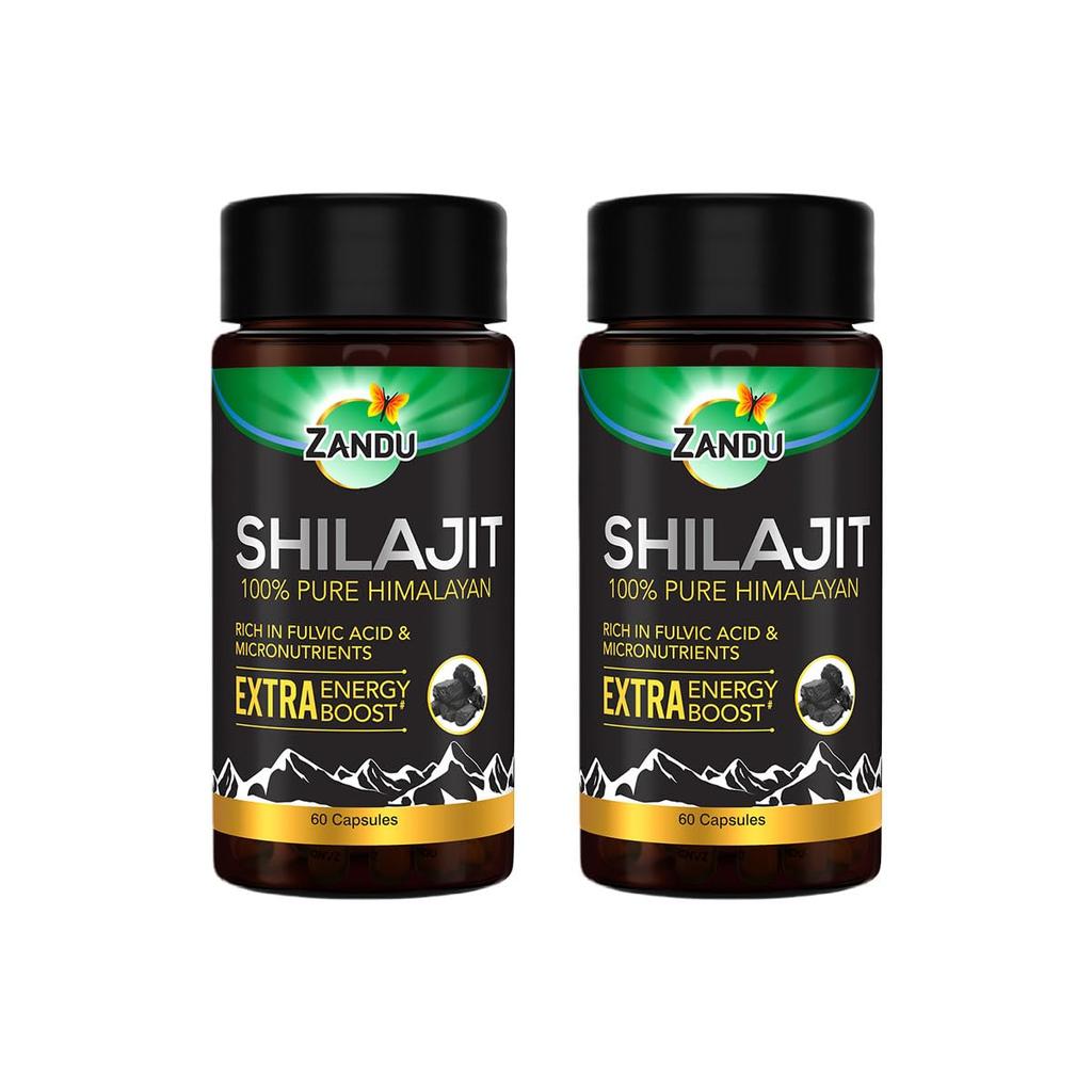 Zandu Shilajit Caps 500 mg 60 N X Pack of 2 | Pure Himalayan Energy Supplement for Daily Stamina & Natural Vitality Boost