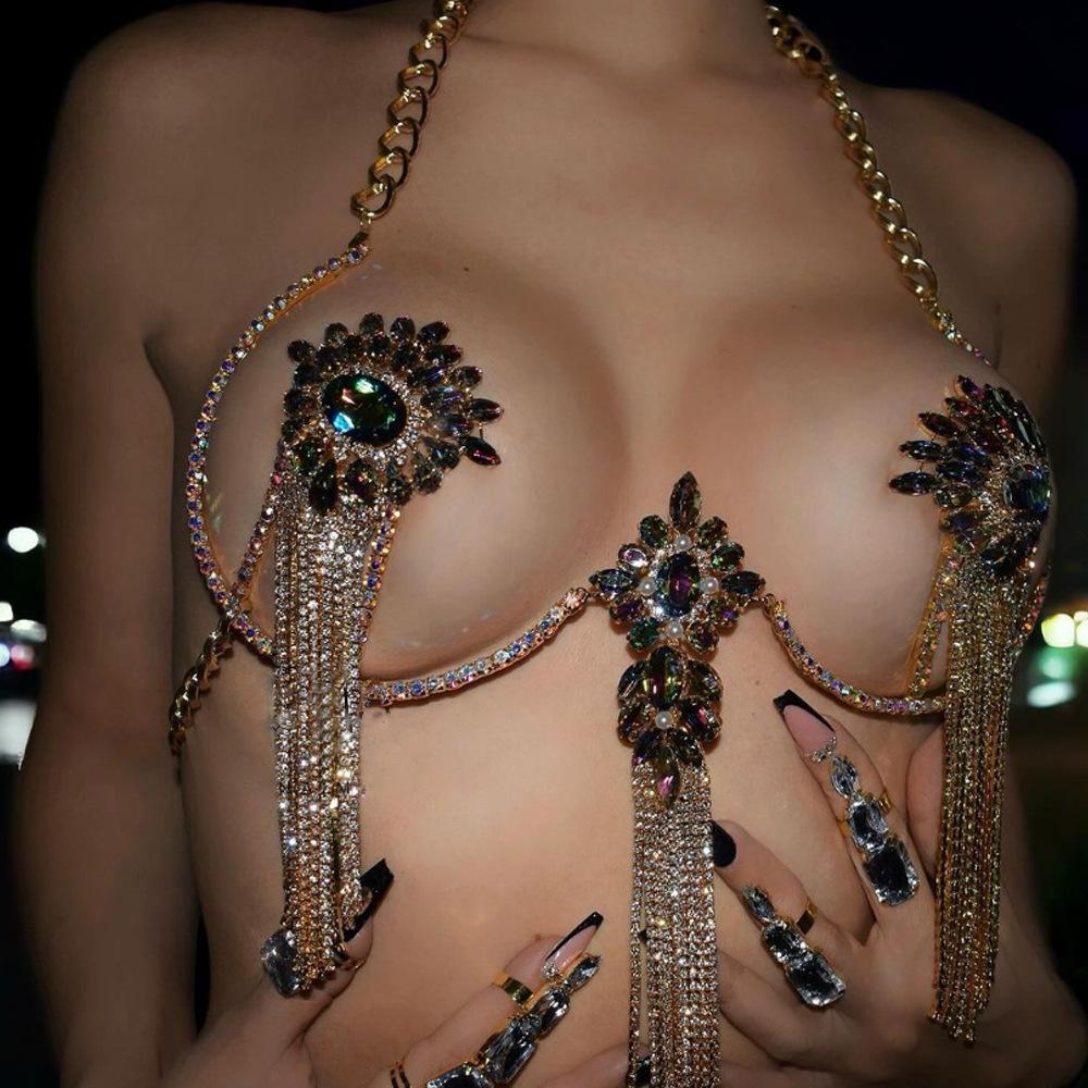 Strassfransen Körperkette Taillenkette Nachtclub Bikini BH Damen Körperkette