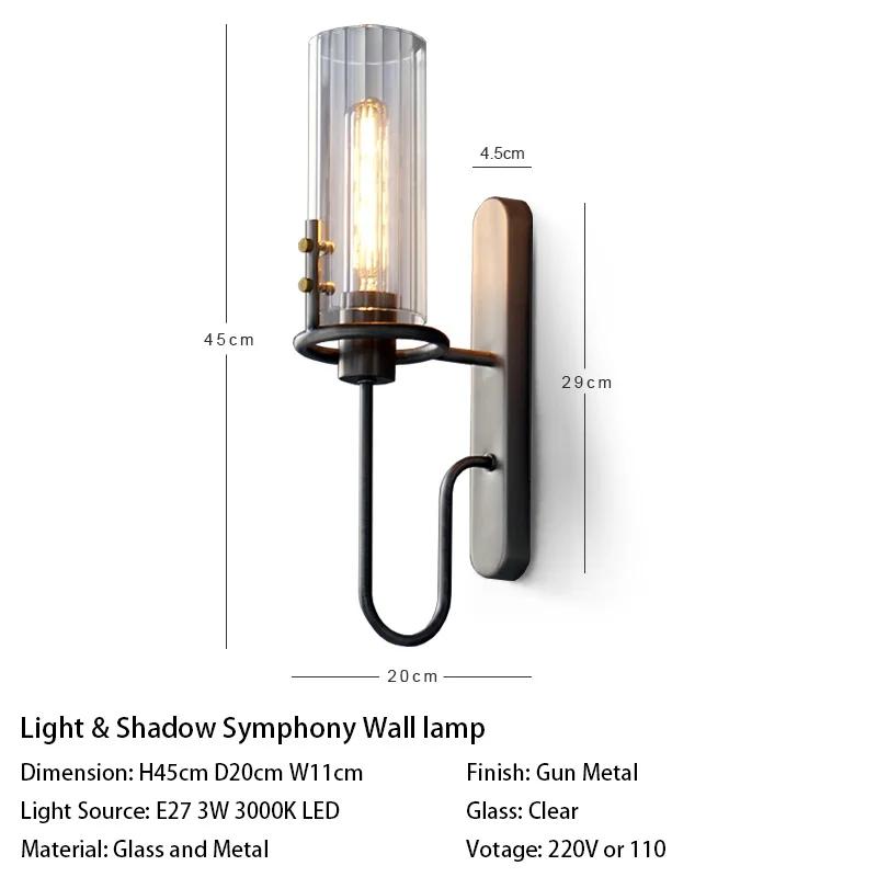 American Retro Industrial LED Wall Lamp Nordic Luxury Glass Crystal Bedside Corridor Mirror Sconces Home Lighting