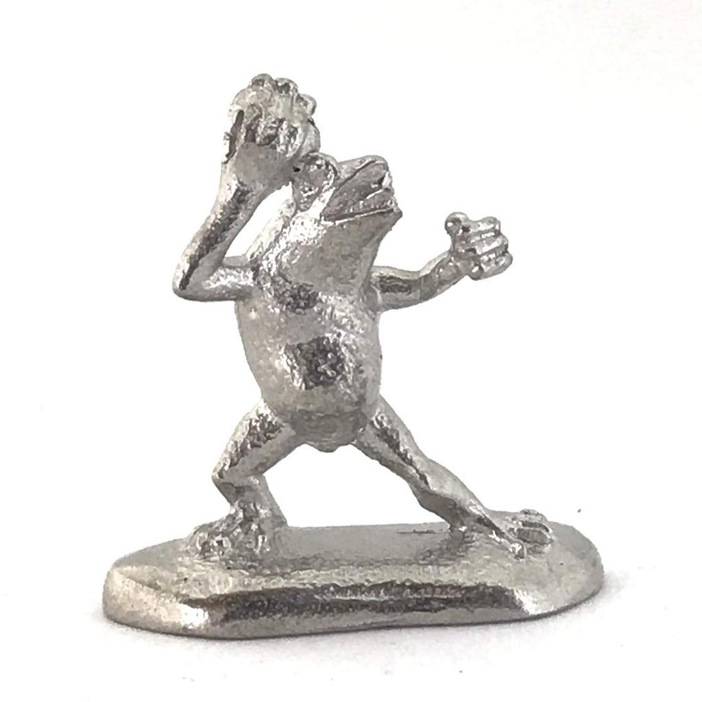 A miniature tin frog from the Choju Jinbutsu Giga perfect for your dry landscape painting, garden.