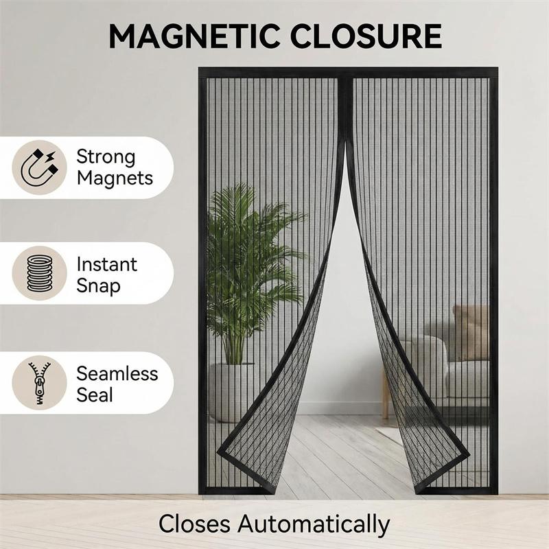 Magnetic Soft Mesh Door Curtain - No Magnetic Strip Threading, Summer Mosquito Proof, Dense Embroidered Screen