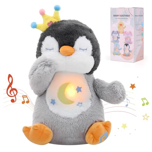 MIAODAM Sleeping Plush Toy, Penguin, Gray, with Music & Night Light, Baby Toy, Baby Shower Gift, Birthday Gift, Christmas Gift, Children's Day Gift, G