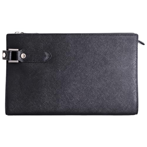 Dom Teporna Herren Clutch Tasche mit großer Öffnung und YKK Reißverschluss, Perfekt für Business, Hochzeiten, Beerdigungen und andere Anlässe, Hergestellt aus Saffiano Leder in