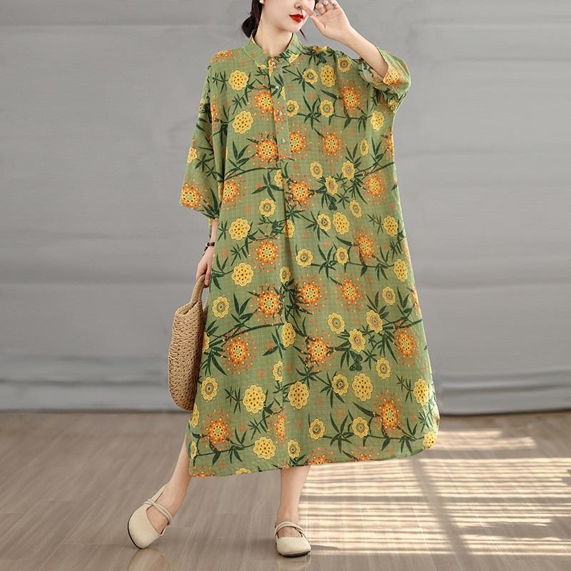Kurzarm Plus Size Baumwolle Vintage Blumenmuster Neu in Kleidern für Damen lässig locker langes Sommerkleid