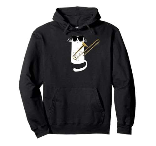 Funny Cat with Sunglasses Playing Trombone Hoodie