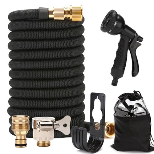 【3x Expandability】When water is applied, it expands up to approximately 3 times its original length, allowing for long-distance watering. The outer layer uses 5000D material with excellent abrasion resistance, making it resistant to expansion and contraction and damage from sharp objects. Note: The length of the hose changes depending on the water pressure; if the water pressure from the faucet is 0.3pa or higher, the hose will extend up to 3 times its original length.