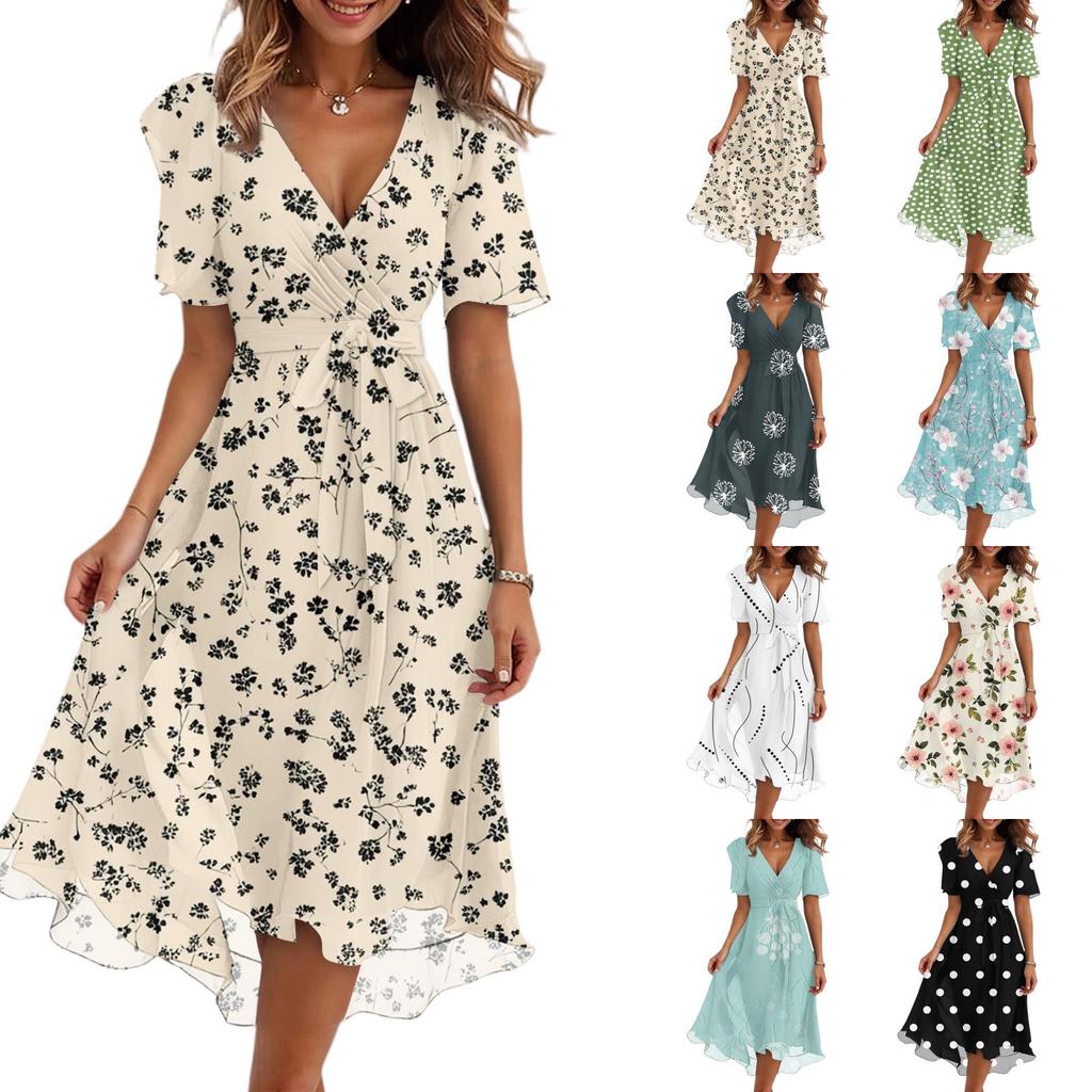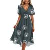 Damenmode Lässig V-Ausschnitt Kurzarm Rüschen Vintage Bedruckte Kleider