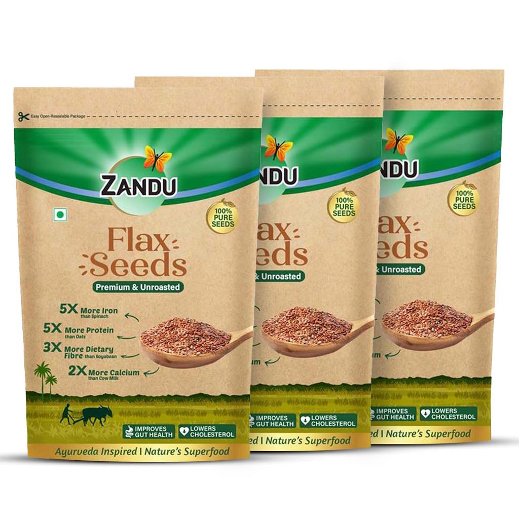 Zandu Raw Flax Seeds 200 g X Pack Of 3 Premium Natural Seeds High Fiber Plant Protein Omega 3 Superfood Resealable Pack